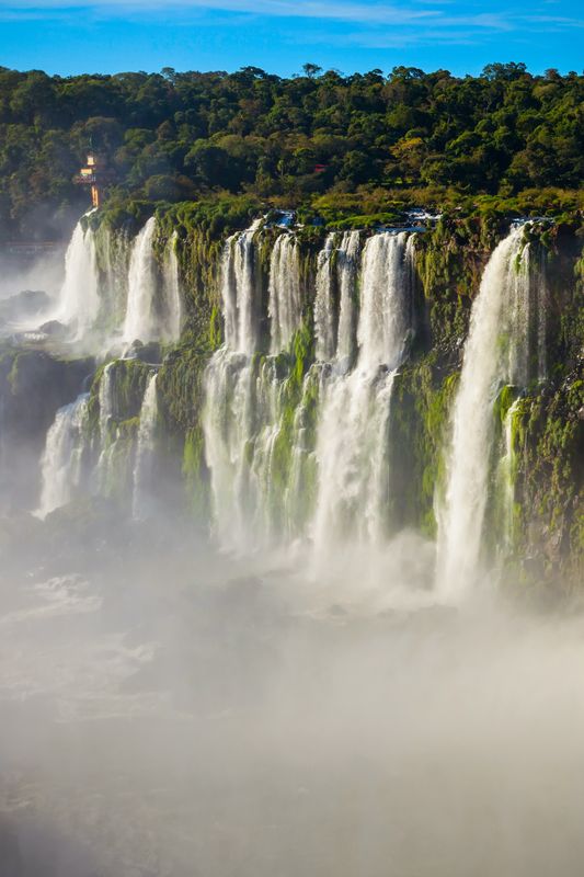 Während dieses erlebnisreichen Tagesausflug lernen Sie die spektakulären Wasserfälle von Iguazú, die aufgrund Ihrer überwältigenden Landschaft – die Wasserfälle sind Mitten in den subtropischen Regenwald eingebettet – und ihrer biologischen Vielfalt von der UNESCO zum Weltnaturerbe deklariert wurden, von der argentinischen Seite kennen. Die Fälle sind zwar nicht die höchsten der Welt, aber mit insgesamt 2,7 km die breitesten und beeindrucken den Besucher zudem mit einer der höchsten Biodiversitäten der Welt. Im Nationalpark lassen sich ca. 2.000 Pflanzenarten und eine Fülle an Vögeln und Säugetieren (u. a. Jaguare, Ozelots, Tapire) finden. Mit einer Schmalspurbahn können Sie zu den verschiedenen Rundwegen gelangen. Auf dem Rundwanderweg entlang der oberen Abbruchkante der Wasserfälle (Circuito Superior), der sich teilweise auf Stegen durch den tropischen Wald schlängelt, können Sie von zahlreichen Aussichtsplattformen aus, den tollen Panoramablick genießen. Mit etwas Glück können Sie auch die todesmutig wirkenden Mauersegler beobachten, die sich auf der Jagd nach Insekten in die Wasserfälle stürzen oder die vorwitzigen Nasenbären, die immer auf der Suche nach Essbarem sind. Über den mit Treppen versehenen unteren Rundweg (Circuito Inferior) gelangen Sie noch näher an die rauschenden Wasserfälle und an das Flussbett heran. Von hier aus kann man auch zur Isla San Martín gelangen, von der man einen atemberaubenden Ausblick auf den Wasserfall Garganta del Diablo (Teufelsschlund) hat. Hufeisenförmig stürzt hier das Wasser ca. 82 m tosend in die Tiefe.