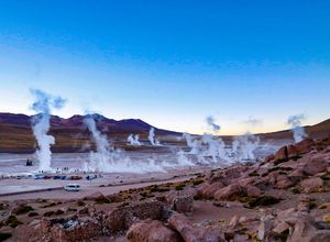 | 8 | San Pedro de AtacamaWir empfehlen Ihnen den Besuch der Tatio Geysire, die auf einer Höhe von 4.300 Metern liegen. Sie sollten allerdings beachten, dass Sie möglichst früh (ca. 04.00 Uhr) losfahren! Es ist das höchste geothermische Feld der Welt und bildet eine beeindruckende Landschaft. In der Morgendämmerung sind die Dampffontänen am besten zu sehen; aus Hunderten von Fumarolen spuckt und brodelt es und immer wieder schießen Fontänen in die Höhe. Der Weg zu den Geysiren (94 km von San Pedro) ist schlecht ausgeschildert, in schlechtem Zustand und nur mit 4x4 Allradfahrzeugen befahrbar. Deshalb empfehlen wir Ihnen, diese Tour bei einer örtlichen Agentur zu buchen anstatt selbst zu fahren. Denken Sie an warme Kleidung, denn in dieser Höhe ist es morgens sehr kalt.