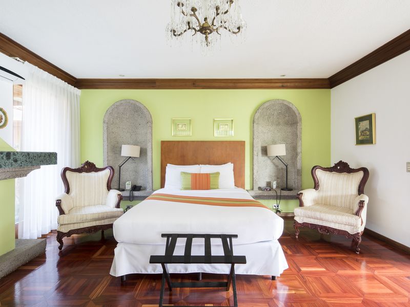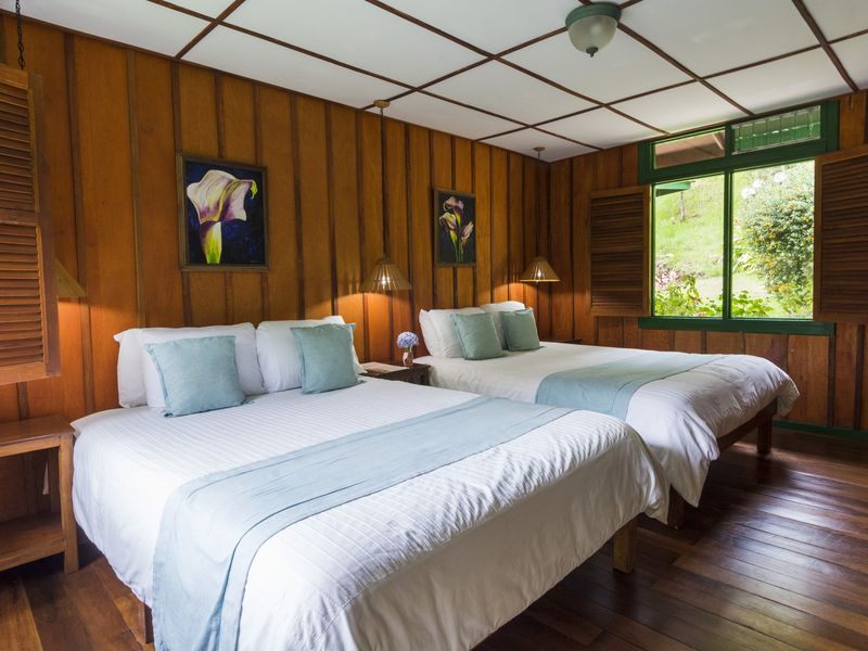 Dieses Hotel bietet eine ideale Lage mitten in einer Kaffeeplantage direkt vor dem Cachí-See, umgeben von beeindruckender Natur. Ein perfekter Ausgangspunkt für verschiedene Aktivitäten wie zum Beispiel Radfahren, Reiten oder Angeln und Ausflüge ins nahegelegene Orosital oder die Gegend von Turrialba. Die geschmackvoll eingerichteten Standard-Zimmer sind mit zwei queen-size Betten ausgestattet. Sie besitzen eine Terrasse mit schönem Blick auf die Berge oder in den Garten. In den Zimmer verfügen Gäste über Annhemlichkeiten wie TV, Kaffeemaschine, Minibar, Deckenventilator, Terrasse und ein privates Badezimmer. Die private Master Suite verfügt zusätzlich über eine Klimaanlage, Jacuzzi, Safe, Telefon und einen Kamin.