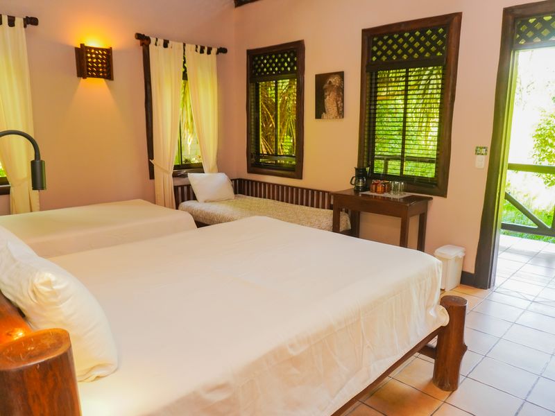 | 4 | Turrialba - SarapiquíHeute verlassen Sie Turrialba und treten die Weiterfahrt über Siquirres und Guápiles nach Puerto Viejo de Sarapiquí an, dem Eldorado für Abenteurer und Naturfans. Unterwegs lohnt sich ein Abstecher zum Nationalpark Braulio Carrillo. Dort können Sie mit einer Luftseilbahn (Aerial Tram) den costa-ricanischen Regenwald von oben entdecken – ein außergewöhnliches Naturerlebnis, das in Erinnerung bleibt. In der Region rund um Sarapiquí werden Ihnen sicherlich die vielen Bananen-, Kakao- und Kaffeeplantagen auffallen. Wenn Sie mehr über den Anbau und die Produktion verschiedener lokaler Lebensmittel erfahren wollen, legen wir Ihnen einen Besuch auf der Bio Farm Finca Surá ans Herz. Dort können Sie selbst einige Ananas-Setzlinge pflanzen und mit den gastfreundlichen Besitzern der Farm in Kontakt kommen. Oder sind Sie eher der Schokoladenfan? Dann darf ein Abstecher zur Tirimbina Lodge im gleichnamigen Reservat nicht fehlen, wo neben der Schokoladentour durch die Kakaoplantage auch weitere spannende Aktivitäten wie z.B. eine nächtliche Fledermaustour angeboten werden. Schließlich erreichen Sie Ihre Unterkunft bei Puerto Viejo de Sarapiquí.
