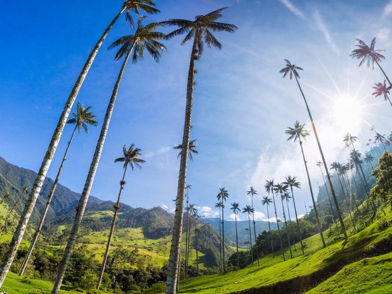 | 2 | ArmeniaHeute unternehmen Sie einen Ausflug in das Cocora Tal, wo sich unzählige der berühmten Wachspalmen befinden. Die bis zu 60 m hohe Palme ist der Nationalbaum Kolumbiens. Die atemberaubende Landschaft können Sie entweder zu Fuß oder im Pferdesattel erkunden. Bevor Sie zu Ihrer Unterkunft zurückkehren, besuchen Sie noch das malerische Dorf Salento mit seinen farbenfrohen Häusern und Kunsthandwerksstätten.